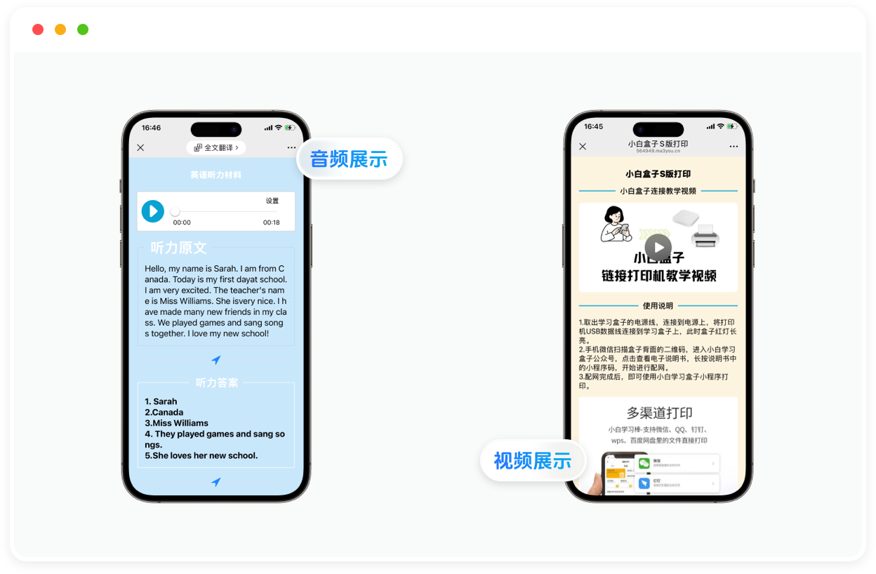 一个二维码可上传多个音视频,适用于多种场景, 内容修改码不变,无需再次印刷二维码,扫原码后即展示新内容